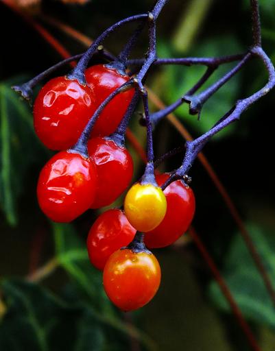 Keywords: The red berries on this Woody Nightshade look very attractive but are poisonous to humans. macromondays hmm