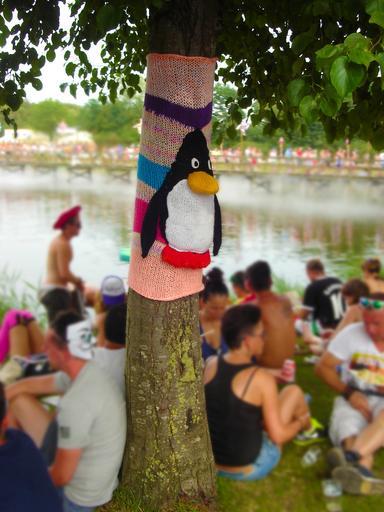 Keywords: wool knit tree penguin festival concert embroidered animal art human group crochet hand labor craft homemade woollen