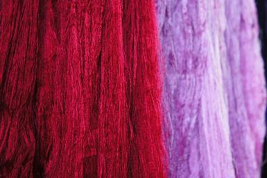 Keywords: wool threads red purple hang dry weaving