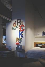 Keywords: words wall chair interior design bed shop letters white alive applied art