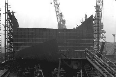 | Keywords: 'nicola' nicola industry austin & pickersgill ltd austinpickersgillltd sunderland shipbuilding sd14 southwick shipyard river wear riverwear blackandwhite monochrome outdoor tower architecture black and white Progress shot of ‘Nicola’ the first SD14 to be built by Austin & Pickersgill, Southwick Yard, 27 November 1967 (TWAM ref. DT.TUR/2/51879A). This set celebrates the ‘Nicola’, the first in a long line of standard ships designed by the Sunderland shipyard of Austin & Pickersgill Ltd. The images document her construction from October 1967 through to her completion in February 1968. The shipbuilders commissioned the Newcastle-based firm Turners (Photography) Ltd to take weekly progress shots of the ‘Nicola’ and these images have given us a unique view of her development. She was the first SD14 to be completed (the name stands for ‘Shelter Deck 14,000 tons deadweight’) and was designed as a replacement for the surviving ‘Liberty ships’, built by American yards during the Second World War. Those Liberty ships had played a vital role in the Allied victory but by the 1960s they were fast approaching the end of their working lives. The SD14 developed by Austin & Pickersgill met the demand for economic and reliable cargo ships. The simplicity of the design meant that it could be marketed by the shipbuilders at a very competitive price. It’s success is reflected by the fact that over the course of 20 years 211 ships were built to the SD14 design by Austin Pickersgill and its licensees. Sunderland can be very proud of its remarkable shipbuilding and engineering history and the SD14 is one the City’s finest achievements. (Copyright) We're happy for you to share these digital images within the spirit of The Commons. Please cite 'Tyne & Wear Archives & Museums' when reusing. Certain restrictions on high quality reproductions and commercial use of the original physical version apply though; if you're unsure please email archives@twmuseums.org.uk Progress shot of ‘Nicola’ the first SD14 to be built by Austin & Pickersgill, Southwick Yard, 27 November 1967 (TWAM ref. DT.TUR/2/51879A). This set celebrates the ‘Nicola’, the first in a long line of standard ships designed by the Sunderland shipyard of Austin & Pickersgill Ltd. The images document her construction from October 1967 through to her completion in February 1968. The shipbuilders commissioned the Newcastle-based firm Turners (Photography) Ltd to take weekly progress shots of the ‘Nicola’ and these images have given us a unique view of her development. She was the first SD14 to be completed (the name stands for ‘Shelter Deck 14,000 tons deadweight’) and was designed as a replacement for the surviving ‘Liberty ships’, built by American yards during the Second World War. Those Liberty ships had played a vital role in the Allied victory but by the 1960s they were fast approaching the end of their working lives. The SD14 developed by Austin & Pickersgill met the demand for economic and reliable cargo ships. The simplicity of the design meant that it could be marketed by the shipbuilders at a very competitive price. It’s success is reflected by the fact that over the course of 20 years 211 ships were built to the SD14 design by Austin Pickersgill and its licensees. Sunderland can be very proud of its remarkable shipbuilding and engineering history and the SD14 is one the City’s finest achievements. (Copyright) We're happy for you to share these digital images within the spirit of The Commons. Please cite 'Tyne & Wear Archives & Museums' when reusing. Certain restrictions on high quality reproductions and commercial use of the original physical version apply though; if you're unsure please email archives@twmuseums.org.uk |