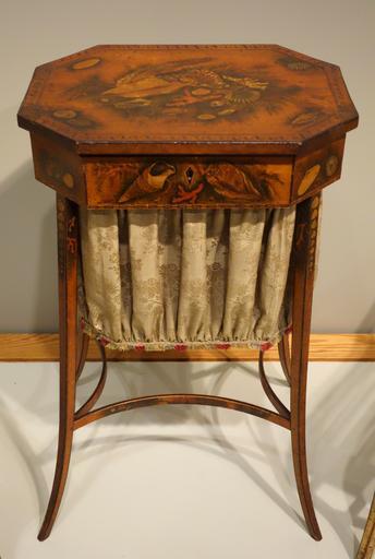 | Keywords: Work table, signed 'Vose & Coates' by Isaac Vose and Joshua Coates, Boston, Massachusetts, 1809-1812, maple with basswood, nyssa, aspen, original painted decoration, replaced bag - Winterthur Museum - DSC01391.JPG en Exhibit in the Winterthur Museum New Castle County Delaware USA Photography was permitted in the museum without restriction This work is in the public domain because the artist died more than 70 years ago 2013-05-08 10 53 02 own Daderot cc-zero Furniture in Winterthur Museum Uploaded with UploadWizard Federal furniture |