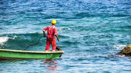 Keywords: worker boat working maritime uniform red safety