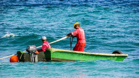 Keywords: workers boat working maritime uniform red safety