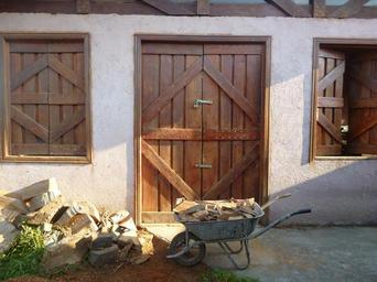 Keywords: workshop shed stable wheelbarrow shutters rustic doors windows