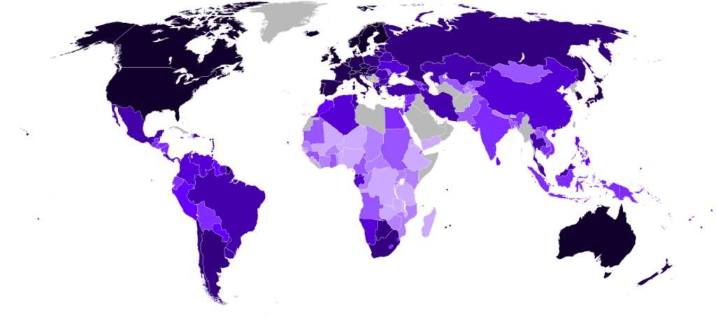 | Keywords: World map of countries by gross domestic product at purchasing power parity per capita in 2006 from the World Bank.png A world map of countries by gross domestic product at purchasing power parity per capita in 2006 from the World Bank Own Saturday the 15th March 2008 Andrew Davis Bsrboy Vector Version - Image World map of countries by gross domestic product at purchasing power parity per capita in 2006 from the World Bank svg ˘ Data refers to the year 2006 http //siteresources worldbank org/DATASTATISTICS/Resources/GDP_PPP pdf Gross Domestic Product Purchasing Power Parity and http //siteresources worldbank org/DATASTATISTICS/Resources/POP pdf Population courtesy of the World Bank 14th September 2007 ˘ Data consists of 159 countries including Macau and Hong Kong ˘ Data map uses 10 shades of colour purple ˘ Data is divided into 9 equal groups and 1 semi-equal group of wealth See below ˘ Top 9 groups consist of 16 countries and the last group consists of 15 Group 1 1-16 1 Luxembourg - 69 203 2 United States - 44 155 3 Macau - 43 765 4 Norway - 43 576 5 Ireland - 41 930 6 Iceland - 38 880 7 Hong Kong - 38 065 8 Switzerland - 37 922 9 Denmark - 36 351 10 Netherlands - 36 220 11 Austria - 35 560 12 Australia - 35 492 13 Finland - 35 195 14 Sweden - 35 161 15 Canada - 35 030 16 United Kingdom - 34 983 Group 2 17-32 17 Belgium - 34 712 18 France - 33 408 19 Singapore - 32 749 20 Japan - 32 385 21 Germany - 31 744 22 Italy - 30 654 23 Spain - 28 55 24 New Zealand - 26 738 25 Greece - 25 076 26 Slovenia - 24 164 27 South Korea - 23 800 28 Czech Republic - 22 792 29 Portugal - 21 942 30 Hungary - 19 585 31 Malta - 19 126 32 Estonia - 18 379 Group 3 33-48 33 Slovakia - 17 826 34 Seychelles - 17 430 35 Trinidad and Tobago - 17 014 36 Equatorial Guinea - 16 548 37 Lithuania - 16 220 38 Latvia - 15 876 39 Argentina - 15 795 40 Poland - 15 445 41 Saint Kitts and Nevis - 14 604 42 Antigua and Barbuda - 14 190 43 Croatia - 14 072 44 Mauritius - 13 451 45 Botswana - 13 088 46 Chile - 12 655 47 Russia - 11 974 48 South Africa - 11 960 Group 4 49-64 49 Malaysia - 11 674 50 Mexico - 11 532 51 Uruguay - 11 451 52 Costa Rica - 11 160 53 Bulgaria - 10 128 54 Romania - 10 091 55 Thailand - 9 331 56 Turkey - 9 073 57 Brazil - 9 054 58 Belarus - 9 035 59 Tunisia - 8 976 60 Kazakhstan - 8 853 61 Dominican Republic - 8 813 62 Tonga - 8 598 63 Iran - 8 567 64 Grenada - 8 546 Group 5 65-80 65 Panama - 8 371 66 Suriname - 8 358 67 Namibia - 8 141 68 Colombia - 7 967 69 People ™s Republic of China - 7 660 70 Ukraine - 7 642 71 Republic of Macedonia - 7 612 72 Venezuela - 7 503 73 Saint Lucia - 7 500 74 Belize - 7 478 75 Algeria - 7 376 76 Micronesia - 7 306 77 Dominica - 7 028 78 Saint Vincent and the Grenadines - 6 983 79 Azerbaijan - 6 888 80 Gabon - 6 750 Group 6 81-96 81 Peru - 6 624 82 Samoa - 6 462 83 Fiji - 6 401 84 Cape Verde - 6 230 85 Jordan - 5 988 86 Armenia - 5 798 87 Albania - 5 732 88 Lebanon - 5 641 89 El Salvador - 5 525 90 Philippines - 5 473 91 Kiribati - 5 287 92 Swaziland - 5 138 93 Sri Lanka - 5 081 94 Paraguay - 5 54 95 Morocco - 5 028 96 Guyana - 4 864 Group 7 97-112 97 Guatemala - 4 802 98 Egypt - 4 664 99 Ecuador - 4 606 100 Jamaica - 4 520 101 Indonesia - 4 130 102 Nicaragua - 4 095 103 Syria - 4 046 104 India - 3 827 105 Georgia - 3 823 106 Honduras - 3 668 107 Lesotho - 3 592 108 Vanuatu - 3 563 109 Vietnam - 3 384 110 Cambodia - 3 041 111 Bolivia - 2 984 112 Papua New Guinea - 2 686 Group 8 113-128 113 Angola - 2 678 114 Ghana - 2 660 115 Pakistan - 2 553 116 Mauritania - 2 500 117 Moldova - 2 489 118 Guinea - 2 439 119 Cameroon - 2 406 120 Sudan - 2 372 121 Mongolia - 2 353 122 Laos - 2 329 123 Djibouti - 2 293 124 Uzbekistan - 2 247 125 Bangladesh - 2 217 126 Solomon Islands - 2 149 127 Kyrgyzstan - 2 024 128 The Gambia - 2 019 Group 9 129-144 129 Comoros - 2 016 130 Zimbabwe - 2 011 131 Senegal - 1 850 132 Haiti - 1 711 133 CĂ´te d ™Ivoire - 1 702 134 Nepal - 1 596 135 Chad - 1 551 136 Uganda - 1 519 137 Togo - 1 511 138 Tajikistan - 1 454 139 Mozambique - 1 345 140 Republic of the Congo - 1 342 141 Burkina Faso - 1 322 142 Kenya - 1 316 143 Central African Republic - 1 286 144 Rwanda - 1 287 Group 10 145-159 145 Ethiopia - 1 192 146 Benin - 1 175 147 Nigeria - 1 166 148 Zambia - 1 098 149 Eritrea - 1 096 150 Mali - 1 090 151 Yemen - 992 152 Madagascar - 972 153 Sierra Leone - 871 154 Guinea-Bissau - 862 155 Niger - 810 156 Democratic Republic of the Congo - 751 157 Tanzania - 751 158 Malawi - 731 159 Burundi - 729 GDP maps of the world GDP per Capita |