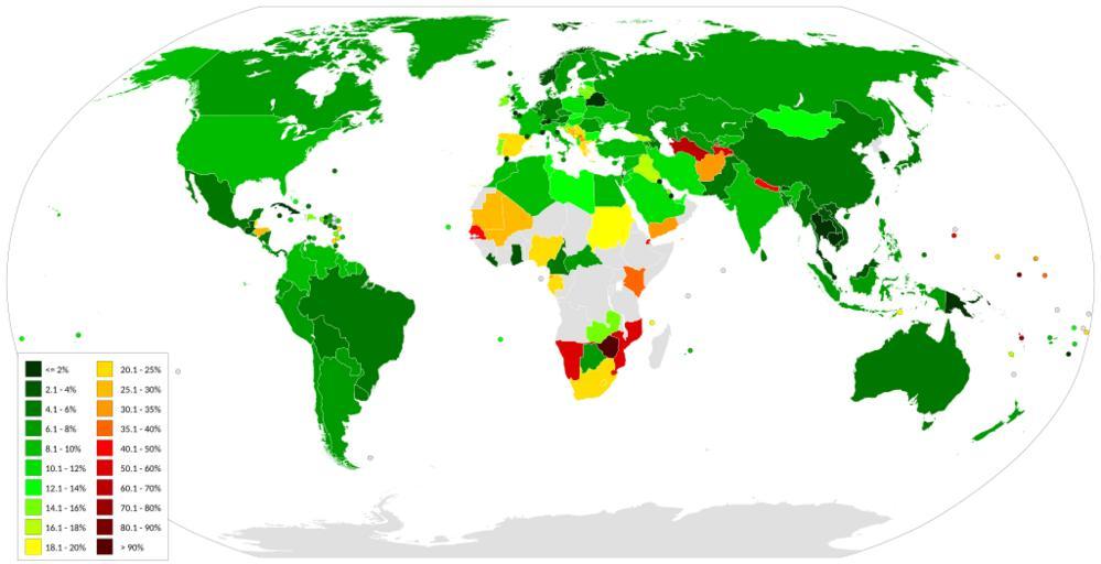 | Keywords: World map of countries by rate of unemployment.svg en A map of the world showing countries shaded by their rate of unemployment Self-made in inkscape using data from list of countries by unemployment rate in http //en wikipedia org/w/index php title List_of_countries_by_unemployment_rate oldid 339687735 this revision 2009-01-24 Jolly Janner Bitmap Update Russia and Ukraine Unemployment rate maps of the world SVG maps of the world | ||||