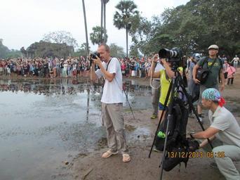 Keywords: World Photographers & Tourists awaiting 'SUNRISE' at Angkor Wat..JPG en Angkor Wat sunrise is considered one of the best sights in the World own Rudolph A Furtado Friday 13- 12-2013 People at Angkor Wat Cc-zero