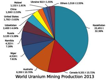 | Keywords: World uranium mining production.svg translate yes en Production of uranium by country in 2013 pie chart Data from http //www world-nuclear org/info/Nuclear-Fuel-Cycle/Mining-of-Uranium/World-Uranium-Mining-Production World Uranium Mining Production 2015-01-10 own Delphi234 other versions cc-zero Uploaded with UploadWizard Uranium mining |