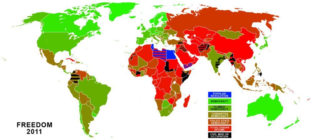 | Keywords: Worldfreedom.png en World Freedom map own Ingoman 2011-02-01 Using the following data https //spreadsheets google com/pub key 0AloywFw9emCwdDFQeWhFQVNDSHhqV2dUaTktTDA0RHc hl en output html Google doc Democracy Political maps of the world 2011 maps Maps of the 2010-2011 Arab Spring protests PNG maps of the world |