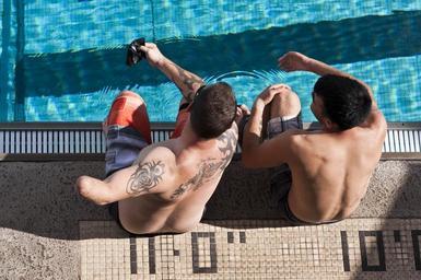 | Keywords: Wounded Warrior Pacific Invitational 140109-N-CZ945-015.jpg en U S Air Force Tech Sgt Leonard Anderson and Staff Sgt Daniel Crane go over swimming techniques during the Wounded Warrior Pacific Invitational swim meet at the Iolani High School's Dillingham Pool WWPI is a competition among seriously wounded ill and wounded service members from the Air Force Army Coast Guard Navy and Special Operations Command The WWPI is the largest joint-service competition to take place outside the annual Warrior Games 2014-01-09 WWPI https //www dvidshub net/image/1148979 140109-N-CZ945-015 2014-01-10 15 44 HONOLULU HI US PD-USGov-Military-Navy 2014 Warrior Games Images from DoD uploaded by Fæ Iolani School |