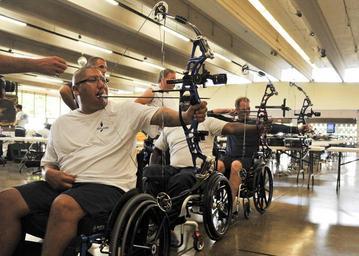 | Keywords: Wounded Warrior Pacific Trials 121113-N-IT566-189.jpg en From Left to Right Boatswain's Mate 1st Class Ret Jim Castaneda Coast Guard Lt Ret Sancho Johnson and Hospital Corpsman 2nd Class Ret shoot at targets during archery practice at the Wounded Warrior Pacific Trials at Joint Base Pearl Harbor-Hickam Nearly 50 seriously wounded ill and injured sailors and Coast Guardsmen from across the country are going head-to-head in archery cycling track and field shooting sitting volleyball swimming and wheel chair basketball for one of 35 places on the 2013 Warrior Games Navy-Coast Guard team U S Navy Photo by Mass Communication Specialist 2nd Class David Kolmel 2012-11-13 Petty Officer 2nd Class David Kolmel https //www dvidshub net/image/783581 121113-N-IT566-189 2012-11-15 21 52 PEARL HARBOR HI US PD-USGov-Military-Navy 2012 in Pearl Harbor Sports at Pearl Harbor Archery in the United States Wounded Warrior 2012 Images from DoD uploaded by Fæ |