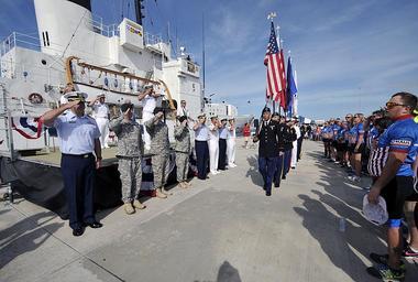 | Keywords: Wounded Warrior Project Soldier Ride 2015 150111-N-YB753-132.jpg en The Joint Interagency Task Force South Honor Guard presents colors at the Truman Waterfront during the Soldier Ride welcome ceremony Wounded Warrior Project ™s Soldier Ride is an opportunity for wounded service members and veterans to use cycling and the bonds of service in overcoming physical mental or emotional wounds U S Navy photo by Mass Communication Specialist 1st Class Brian Morales/ Released 2015-01-11 Petty Officer 1st Class Brian Morales https //www dvidshub net/image/1722227 150111-N-YB753-132 2015-01-13 10 53 KEY WEST FL US PD-USGov-Military-Navy Wounded Warrior 2015 Images from DoD uploaded by Fæ |