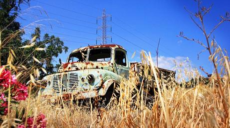 Keywords: wreck oldtimer break up scrap rusted turned off stainless vehicle old auto retired