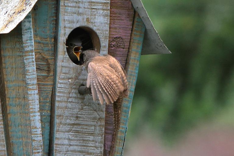 Keywords: wren birdhouse wildlife perched feather outdoor tree natural nest feeding