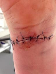 Keywords: wrist cut zombie wound stitches