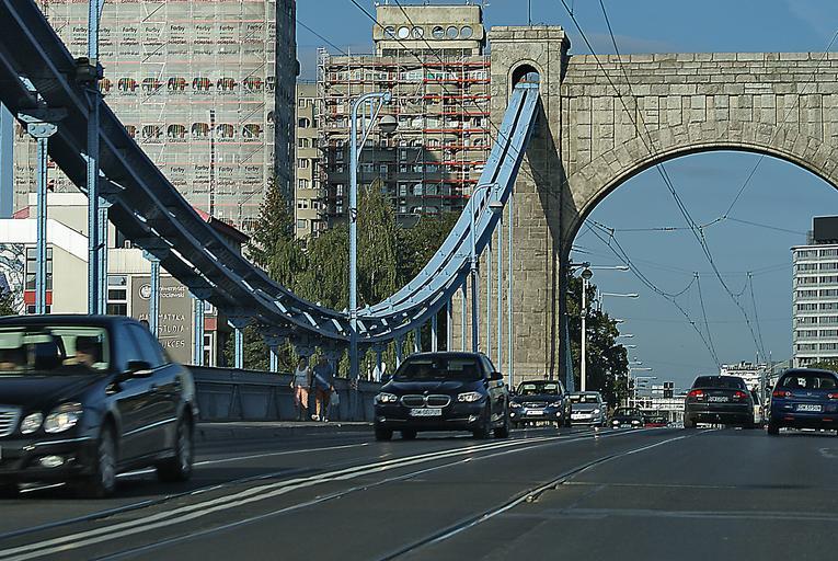 Keywords: wrocław bridge grunwaldzki bridge roadway cars traffic architecture view monuments span bridge city history city life river measles the background children grunwaldzki