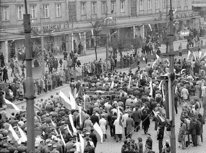 | Keywords: Wroclaw1maja1982.jpg May 1st 1982 - martial state in Poland; official communist Workers' Day procession in Wrocław 1 maja 1982 - stan wojenny w Polsce; oficjalny pochód pierwszomajowy we Wrocławiu ul Świerczewskiego na zachód w stronę pl PKWN dziś ul Piłsudskiego i pl Legionów Own 1982-05-01 Julo Julo Demonstrations and protests in Wrocław Martial law in Poland History of Wrocław Piłsudskiego Street Wrocław 1982 in Poland 1st of May in Poland | ||||