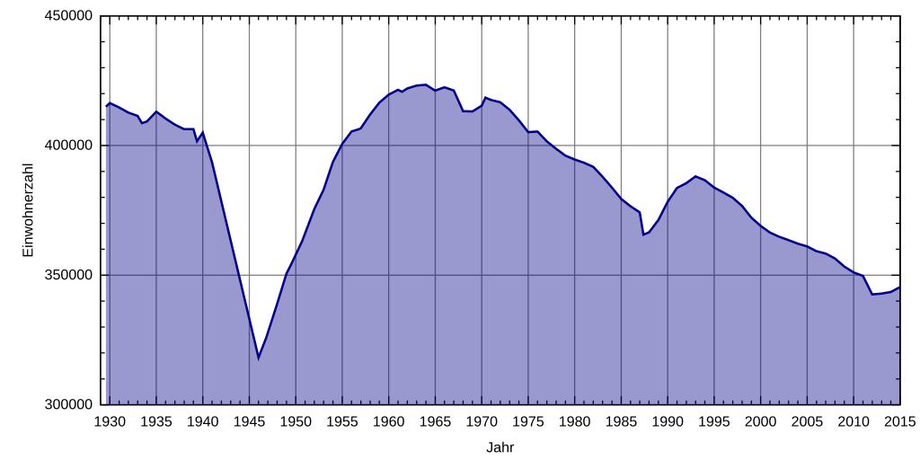 | Keywords: Wuppertal population.svg en Wuppertal population statistics since 1929 de Einwohnerentwicklung von Wuppertal seit 1929 own ; data from de Einwohnerentwicklung_von_Wuppertal Gorgo 2011-03-10 Gnuplot script to generate this plot gnuplot <source lang gnuplot > /usr/bin/gnuplot gnuplot 4 2 / Ubuntu 8 10 input set timefmt d m Y set datafile separator ; output unset key set style data lines set style fill solid 0 4 set grid set xdata time set xlabel 'Jahr' set xrange '01 01 1929' '31 12 2014' set xtics 157680000 set mxtics 5 set format x ' Y' set ylabel 'Einwohnerzahl' set yrange 300000 450000 set ytics 50000 set mytics 5 set format y ' 0f' set term svg size 800 400 font Arial 10 set output 'wuppertal_population svg' plot '-' using 1 2 with filledcurves below x1 lt rgb 'dark-blue' lw 2 01 08 1929;414951 31 12 1929;416400 31 12 1930;414700 31 12 1931;412700 31 12 1932;411400 16 06 1933;408602 31 12 1933;409270 31 12 1934;413050 31 12 1935;410404 31 12 1936;408023 31 12 1937;406303 31 12 1938;406300 17 05 1939;401672 31 12 1939;405000 31 12 1940;393486 31 12 1945;318209 29 10 1946;325846 31 12 1947;338942 31 12 1948;350600 30 06 1949;354046 13 09 1950;363224 31 12 1951;375493 31 12 1952;382983 31 12 1953;393684 31 12 1954;400635 31 12 1955;405428 25 09 1956;406225 31 12 1956;406653 31 12 1957;411938 31 12 1958;416573 31 12 1959;419638 31 12 1960;421489 06 06 1961;420711 31 12 1961;422035 31 12 1962;423103 31 12 1963;423453 31 12 1964;421167 31 12 1965;422461 31 12 1966;421218 31 12 1967;413252 31 12 1968;413122 31 12 1969;415345 27 05 1970;418454 31 12 1970;417566 31 12 1971;416699 31 12 1972;413819 31 12 1973;409715 31 12 1974;405144 31 12 1975;405369 31 12 1976;401609 31 12 1977;398729 31 12 1978;396125 31 12 1979;394605 31 12 1980;393381 31 12 1981;391758 31 12 1982;387951 31 12 1983;383775 31 12 1984;379393 31 12 1985;376579 31 12 1986;374217 25 05 1987;365662 31 12 1987;366546 31 12 1988;371283 31 12 1989;378312 31 12 1990;383660 31 12 1991;385463 31 12 1992;388102 31 12 1993;386625 31 12 1994;383776 31 12 1995;381884 31 12 1996;379820 31 12 1997;376693 31 12 1998;372218 31 12 1999;368993 31 12 2000;366434 31 12 2001;364784 31 12 2002;363522 31 12 2003;362137 31 12 2004;361077 31 12 2005;359237 31 12 2006;358330 31 12 2007;356420 31 12 2008;353308 31 12 2009;351050 31 12 2010;349721 31 12 2011;342570 31 12 2012;342885 31 12 2013;343488 31 12 2014;345425 e </source> Cc-zero Population statistics in Wuppertal 2011 in Wuppertal Images with Gnuplot source code |