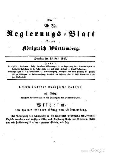 | Keywords: Württemberg Regierungsblatt 1842 385.png Württemberg Regierungsblatt 1842_ png 384 386 Regierungs-Blatt für das Königreich Württemberg vom Jahr 1842 chBGAAAAcAAJ 1842 Kingdom of Württemberg PD-old-70-1923 De Königreich Württemberg Regierungsblatt 1842 |