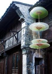 Keywords: wuzhen building ancient architecture china wind the ming and qing dynasties huizhou architecture wood frame wooden tile green black white line doors and windows brown paper umbrella cyan
