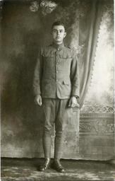| Keywords: halifax county halifaxcounty wwi monochrome Real-photo postcard studio portrait of H.G. Pope, wearing his U.S. Army uniform, of Tillery, N.C. Pope served in the 120th Infantry, 30th Division (undated). From Box 8, North Carolina County War Records, WWI 2, WWI Papers, Military Collection, State Archives of North Carolina. Real-photo postcard studio portrait of H.G. Pope, wearing his U.S. Army uniform, of Tillery, N.C. Pope served in the 120th Infantry, 30th Division (undated). From Box 8, North Carolina County War Records, WWI 2, WWI Papers, Military Collection, State Archives of North Carolina. |