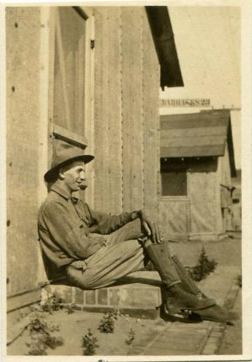 | Keywords: halifax county halifaxcounty wwi monochrome Snapshot photograph of Peter Evans Shields, sitting in his U.S. Army uniform on the step against a U.S. Army barracks buildings. Evans was from Scotland Neck, N.C. (undated). From Box 8, North Carolina County War Records, WWI 2, WWI Papers, Military Collection, State Archives of North Carolina. Snapshot photograph of Peter Evans Shields, sitting in his U.S. Army uniform on the step against a U.S. Army barracks buildings. Evans was from Scotland Neck, N.C. (undated). From Box 8, North Carolina County War Records, WWI 2, WWI Papers, Military Collection, State Archives of North Carolina. |