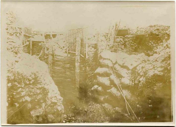 Keywords: the great war thegreatwar great war greatwar world war i worldwari world war one worldwarone the first world war thefirstworldwar wwi ww1 trench warfare trenchwarfare texture View inside of an artillery-damaged trench somewhere in Europe during World War I. A wood and thatch trench partition of some sort, with sandbags reinforcing the sides of the trench (undated) [Photograph collected by Henry L. Graves]. --From Henry L. Graves Papers, WWI 55, Military Collection, State Archives of North Carolina View inside of an artillery-damaged trench somewhere in Europe during World War I. A wood and thatch trench partition of some sort, with sandbags reinforcing the sides of the trench (undated) [Photograph collected by Henry L. Graves]. --From Henry L. Graves Papers, WWI 55, Military Collection, State Archives of North Carolina |