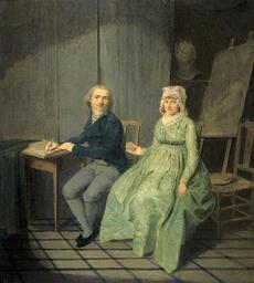 | Keywords: Wybrand Hendriks - Een schilder met zijn vrouw.jpg Artwork Q17325371 Creator Wybrand Hendriks LangSwitch Portrait of a painter and his wife Portret van een schilder en zijn vrouw <ref>http //www rkd nl/rkddb/dispatcher aspx action search database ChoiceImages search priref 5259 RKDimages Kunstwerknummer 5259 </ref> Alternate titles Een schilder met zijn vrouw <ref>https //www rijksmuseum nl/collectie/SK-A-1989 Rijksmuseum Amsterdam - Nationaal Museum voor Kunst en Geschiedenis </ref> 1791 Oil on canvas cm 52 47 institution Rijksmuseum bottom right W Hendriks 1791 object history ProvenanceEvent 1902-06 gift LangSwitch das the au het Rijksmuseum Amsterdam Jhr B M F van Riemsdijk www rijksmuseum nl http //www rijksmuseum nl/ lang en Home https //www rijksmuseum nl/collectie/SK-A-1989 Info https //www rijksmuseum nl/assetimage2 jsp id SK-A-1989 Pic SK-A-1989 Other versions 5259 PD-old-100 LangSwitch References Noten <references /> DEFAULTSORT 1791; unknown people Wybrand Hendriks Paintings by Wybrand Hendriks in the Rijksmuseum Amsterdam Hendriks Wybrand 18th-century portrait paintings of unidentified people 1791 portrait paintings 18th-century oil portraits at full length 18th-century portrait paintings in the Netherlands 18th-century unidentified painters Breeches in art Busts in portrait paintings Chairs in portrait paintings Mob caps Paintings of sitting couples Portrait paintings of painters Portrait paintings of sitting people Tables in portrait paintings |