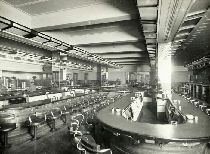 | Keywords: archives state records nsw staterecordsnsw newsouthwales blackandwhite refreshment room refreshmentroom tea room tearoom cafe railways wynyard sydney people stools indoor black and white Wynyard Railway Refreshment Room - interior of buffet Dated: by 01/05/1936 Digital ID: 17420_a014_a014000103 Rights: www.records.nsw.gov.au/about-us/rights-and-permissions We'd love to hear from you if you use our photos/documents. Many other photos in our collection are available to view and browse on our website using Photo Investigator. Wynyard Railway Refreshment Room - interior of buffet Dated: by 01/05/1936 Digital ID: 17420_a014_a014000103 Rights: www.records.nsw.gov.au/about-us/rights-and-permissions We'd love to hear from you if you use our photos/documents. Many other photos in our collection are available to view and browse on our website using Photo Investigator. |