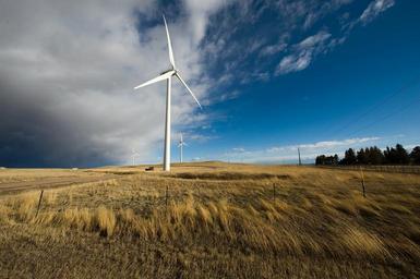 Keywords: wyoming landscape wind turbines energy alternative sky clouds fields trees nature outside country countryside rural