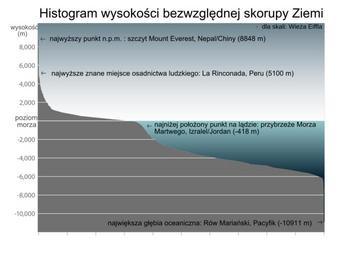 Keywords: Wysokość bezwzględna Ziemi.svg Histogram skorupy ziemskiej own 2008-11-11 Adi4000 Earth elevation histogram 2 svg Hypsometric curves
