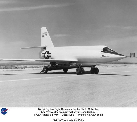 | Keywords: X-2 on Transportation Dolly DVIDS734540.jpg en This 1952 photograph shows the X-2 2 aircraft mounted on a special transportation dolly at Edwards Air Force Base California The dolly was steerable and was used for transporting the X-2 around and for towing it off the lakebed at Edwards Air Force Base after a landing This was the number 2 airplane 46-675 which was lost on May 12 1953 on a captive flight over Lake Ontario when the airplane exploded during a liquid-oxygen topoff test killing the pilot Jean Ziegler and EB-50A crewman Frank Wolko Almost no debris was recovered from Lake Ontario so no cause for the explosion could be determined Later however investigations of similar explosions in the X-1 3 X-1A and X-1D traced the problem to Ulmer leather gaskets which exuded tricresyl phosphate This substance caused detonations in the supercold atmosphere of the airplanes' liquid oxygen tanks As the X-2 2 also had these gaskets they were probably the cause of the explosion in that aircraft as well The X-2 was a swept-wing rocket-powered aircraft designed to fly faster than Mach 3 three times the speed of sound It was built for the U S Air Force by the Bell Aircraft Company Buffalo New York The X-2 was flown to investigate the problems of aerodynamic heating as well as stability and control effectiveness at high altitudes and high speeds in excess of Mach 3 Bell aircraft built two X-2 aircraft These were constructed of K-monel a copper and nickel alloy for the fuselage and stainless steel for the swept wings and control surfaces The aircraft had ejectable nose capsules instead of ejection seats because the development of ejection seats had not reached maturity at the time the X-2 was conceived The X-2 ejection canopy was successfully tested using a German V-2 rocket The X-2 used a skid-type landing gear to make room for more fuel The airplane was air launched from a modified Boeing B-50 Superfortress Bomber X-2 Number 1 made its first unpowered glide flight on Aug 5 1954 and made a total of 17 4 glide and 13 powered flights before it was lost Sept 27 1956 The pilot on Flight 17 Capt Milburn Apt had flown the aircraft to a record speed of Mach 3 2 2 094 mph thus becoming the first person to exceed Mach 3 During that last flight inertial coupling occurred and the pilot was killed The aircraft suffered little damage in the crash resulting in proposals never implemented from the Langley Memorial Aeronautical Laboratory Hampton Virginia to rebuild it for use in a hypersonic Mach 5+ test program In 1953 X-2 Number 2 was lost in an in-flight explosion while at the Bell Aircraft Company during captive flight trials and was jettisoned into Lake Ontario The Air Force had previously flown the aircraft on three glide flights at Edwards Air Force Base California in 1952 Although the NACA's High-Speed Flight Station Edwards California predecessor of NASA's Dryden Flight Research Center never actually flew the X-2 aircraft the NACA did support the program primarily through Langley Memorial Aeronautical Laboratory wind-tunnel tests and Wallops Island Virginia rocket-model tests The NACA High-Speed Flight Station also provided stability-and-control recording instrumentation and simulator support for the Air Force flights In the latter regard the NACA worked with the Air Force in using a special computer to extrapolate and predict aircraft behavior from flight data NASA Identifier NIX-E-5749 2009-09-23 Glenn Research Center https //www dvidshub net/image/734540 734540 2012-10-17 20 29 WASHINGTON DC US PD-USGov Aircraft at Rogers Dry Lake Images from DoD uploaded by Fæ Bell X-2 |