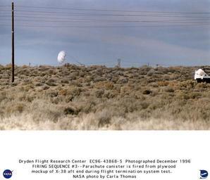 | Keywords: X-38, Parachute Canister Fired from Plywood Mockup during Flight Termination System Test DVIDS700816.jpg en The canister containing a seven-foot-diameter X-38 Flight Termination System FTS parachute is launched safely away from a plywood mockup of the X-38 by a pyrotechnic firing system on December 19 1996 at NASA Dryden Flight Research Center Edwards California The test was economically accomplished by mounting the mockup of the X-38's aft end minus vertical stabilizers on a truck prior to installation in the X-38 The X-38 Crew Return Vehicle CRV research project is designed to develop the technology for a prototype emergency crew return vehicle or lifeboat for the International Space Station The project is also intended to develop a crew return vehicle design that could be modified for other uses such as a joint U S and international human spacecraft that could be launched on the French Ariane-5 Booster The X-38 project is using available technology and off-the-shelf equipment to significantly decrease development costs Original estimates to develop a capsule-type crew return vehicle were estimated at more than 2 billion X-38 project officials have estimated that development costs for the X-38 concept will be approximately one quarter of the original estimate Off-the-shelf technology is not necessarily old technology Many of the technologies being used in the X-38 project have never before been applied to a human-flight spacecraft For example the X-38 flight computer is commercial equipment currently used in aircraft and the flight software operating system is a commercial system already in use in many aerospace applications The video equipment for the X-38 is existing equipment some of which has already flown on the space shuttle for previous NASA experiments The X-38's primary navigational equipment the Inertial Navigation System/Global Positioning System is a unit already in use on Navy fighters The X-38 electromechanical actuators come from previous joint NASA U S Air Force and U S Navy research and development projects Finally an existing special coating developed by NASA will be used on the X-38 thermal tiles to make them more durable than those used on the space shuttles The X-38 itself was an unpiloted lifting body designed at 80 percent of the size of a projected emergency crew return vehicle for the International Space Station although two later versions were planned at 100 percent of the CRV size The X-38 and the actual CRV are patterned after a lifting-body shape first employed in the Air Force-NASA X-24 lifting-body project in the early to mid-1970s The current vehicle design is base lined with life support supplies for about nine hours of orbital free flight from the space station It's landing will be fully automated with backup systems which allow the crew to control orientation in orbit select a deorbit site and steer the parafoil if necessary The X-38 vehicles designated V131 V132 and V-131R are 28 5 feet long 14 5 feet wide and weigh approximately 16 000 pounds on average The vehicles have a nitrogen-gas-operated attitude control system and a bank of batteries for internal power The actual CRV to be flown in space was expected to be 30 feet long The X-38 project is a joint effort between the Johnson Space Center Houston Texas JSC Langley Research Center Hampton Virginia LaRC and Dryden Flight Research Center Edwards California DFRC with the program office located at JSC A contract was awarded to Scaled Composites Inc Mojave California for construction of the X-38 test airframes The first vehicle was delivered to the JSC in September 1996 The vehicle was fitted with avionics computer systems and other hardware at Johnson A second vehicle was delivered to JSC in December 1996 Flight research with the X-38 at Dryden began with an unpiloted captive-carry flight in which the vehicle remained attached to its future launch vehicle Dryden's B-52 008 There were four captive flights in 1997 and three in 1998 plus the first drop test on March 12 1998 using the parachutes and parafoil Further captive and drop tests occurred in 1999 In March 2000 Vehicle 132 completed its third and final free flight in the highest fastest and longest X-38 flight to date It was released at an altitude of 39 000 feet and flew freely for 45 seconds reaching a speed of over 500 miles per hour before deploying its parachutes for a landing on Rogers Dry Lakebed In the drop tests the X-38 vehicles have been autonomous after airlaunch from the B-52 After they deploy the parafoil they have remained autonomous but there is also a manual mode with controls from the ground NASA Identifier NIX-EC96-43868-5 2009-09-23 Glenn Research Center https //www dvidshub net/image/700816 700816 2012-10-10 14 44 WASHINGTON DC US PD-USGov Langley Research Center Images from DoD uploaded by Fæ NASA X-38 |