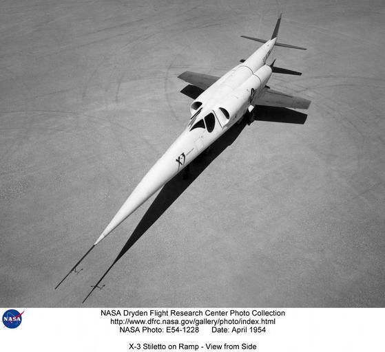 | Keywords: naca nasa nasa dryden flight research center nasadrydenflightresearchcenter aeronautics airplane 1954 x-3 x3 stiletto text sport blackandwhite black and white This National Advisory Committee for Aeronautics (NACA) High-Speed Flight Station (now known as the NASA Armstrong Flight Research Center) photograph shows a side-view of the X-3 Stiletto research aircraft on the ramp at Edwards Air Force Base in 1954. The X-3 had, perhaps, the most highly refined supersonic airframe of its day as well as other important advances including one of the first machined structures. It included the first use of titanium in major airframe components. Its long fuselage gave the Stiletto a high-fineness ratio and a low-aspect ratio (the ratio of the wing's span to its chord; in other words, the wings were short and stubby). Despite this refined configuration, the maximum speed it attained was Mach 1.21, during a dive. Image #: E54-1228 Date: April 1, 1954 This National Advisory Committee for Aeronautics (NACA) High-Speed Flight Station (now known as the NASA Armstrong Flight Research Center) photograph shows a side-view of the X-3 Stiletto research aircraft on the ramp at Edwards Air Force Base in 1954. The X-3 had, perhaps, the most highly refined supersonic airframe of its day as well as other important advances including one of the first machined structures. It included the first use of titanium in major airframe components. Its long fuselage gave the Stiletto a high-fineness ratio and a low-aspect ratio (the ratio of the wing's span to its chord; in other words, the wings were short and stubby). Despite this refined configuration, the maximum speed it attained was Mach 1.21, during a dive. Image #: E54-1228 Date: April 1, 1954 |
