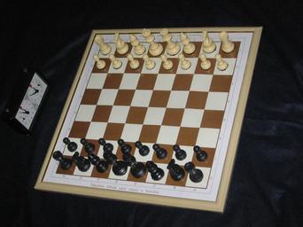 | Keywords: Xadrez inicial 4.jpg A sample of official size chess pieces in the starting position on a board with algebraic notation markings A chess clock is nearby own 2007-03-14 Luis Dantas Chess sets Files by User Luis Dantas Taken with Canon PowerShot A520 Chessboards |