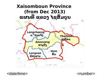 | Keywords: Xaisomboun Province (from Dec 2013). Laos.svg en New map of the Xaisomboun Province following official Laos governement data http //www na gov la/sess_leg7/doc_sess6_leg7/session6_docs/day5/Presentation13 ppt 2013-12-13 own Capiscuas other versions 18 970390720040506 102 54720280621592 cc-zero Maps of Laos Uploaded with UploadWizard |