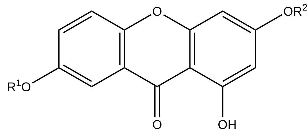 | Keywords: Xanthones-Gentiana.svg misaligned atom labels en Xanthones a selected constituent of Gentiana Created using ChemDraw Ultra 12 gentisin R1 H R2 CH3 isogentisin R1 CH3 R2 H gentisin R1 H R2 primeverosyl 2014-06-19 20 59 36 own Andromeas cc-zero Uploaded with UploadWizard Xanthones Gentiana |