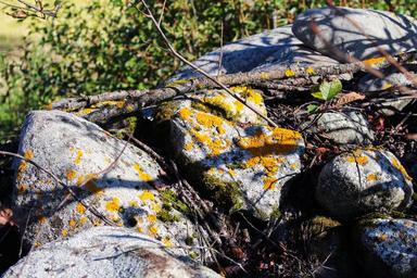 Keywords: xanthoria parietina yellow lichen rocks stones moss natural color
