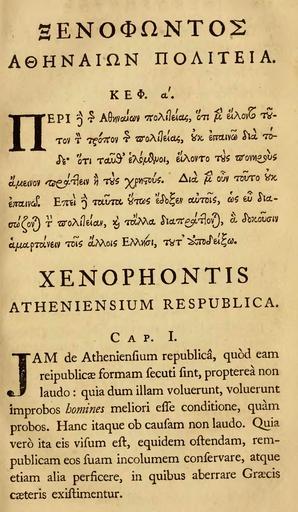 Keywords: Xen Ath pol Clarendon 1754.jpg ru Ст аница из книги с малыми сочинениями Ксенофонта издательство Clarendon Оксфо д 1754 год ачало Афинской политии г еческий о игинал и латинский пе евод 2011-09-18 Книга Xenophontis oratio De Agesilao rege Oxonii e Typographeo Clarenoniano 1754 Typographeum Clarenonianum PD-old-100 PD-Art Uploaded with UploadWizard Xenophon