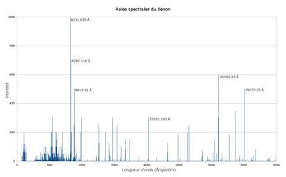 | Keywords: Xenon Raies spectrales.png fr Raies spectrales du Xénon Créé avec OpenOffice org Calc Bless et The Gimp d'après http //www hbcpnetbase com/ Handbook of Chemistry Physics own Epop 2008-06-25 Check categories 2008 November 28 fr wikipedia Xénon Xenon Xenon |