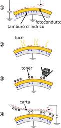 | Keywords: Xerographic photocopy process it.svg it wikipedia 2016 August 14 Schematic drawing of the xeroxgraphic photocopying process Vectorization of the image Original image made by 'Wschneider' on the German Wikipedia Charging The surface of a cylindrical drum is given an electrostatic charge by either a high voltage wire called a corona wire or a charge roller The drum is coated with a photoconductive material A is a semiconductor that becomes conductive when exposed to light Exposure A bright lamp illuminates the original document and the white areas of the original document reflect the light onto the surface of the photoconductive drum The areas of the drum that are exposed to light those areas that correspond to white areas of the original document become conductive and therefore discharge to ground The area of the drum not exposed to light those areas that correspond to black portions of the original document remain negatively charged The result is a latent electrical image on the surface of the drum Developing The toner is positively charged When it is applied to the drum to develop the image it is attracted and sticks to the areas that are negatively charged black areas just as paper sticks to a toy balloon with a static charge Transfer The resulting toner image on the surface of the drum is transferred from the drum onto a piece of paper with a higher negative charge than the drum Desen schematic al procesului fotocopierii xerografice Versiune vectorizată imagine originală realizată de către Wschneider pe Wikipedia în limba germană Încărcare Suprafeţei unui tambur îi este atribuită o sarcină electrostatică fie de către un cablu de înaltă tensiune numit cablu corona fie de către o rolă de încărcare sau de developare Tamburul este învelit într-un material fotoconductiv zona galbenă din imagine adică un semiconductor care devine conductiv atunci când este expus la lumină Expunere O lampă puternică iluminează documentul original iar zonele albe ale acestuia reflectă lumina pe suprafața tamburului fotoconductiv Zonele expuse la lumină ale tamburului devin conductive și prin urmare se descarcă la pământ Zonele neexpuse la lumină ale tamburului acelea corespunzătoare porțiunilor negre ale documentului original rămân încărcate negativ Rezultatul este o imagine electrică latentă pe suprafața tamburului Developare Imaginea din pigment rezultată pe suprafața tamburului este transferată de pe acesta pe o foaie de hârtie cu o sarcină negativă mai mare decât cea a tamburului Transfer Pigmentul este topit și fixat pe hârtie de către role presante încinse traduzione da http //en wikipedia org/wiki/File Xerographic_photocopy_process_en svg 2007 2009 Yzmo Scriban wikipedia it Scriban Original upload log it wikipedia Xerographic+photocopy+process+it svg wikitable - 2009-04-29 08 57 850×1779× 132004 bytes Scriban traduzione da http //en wikipedia org/wiki/File Xerographic_photocopy_process_en svg Photocopiers |