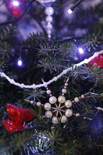 Keywords: xmas christmas tree christmas beaded ornament white red light tree season