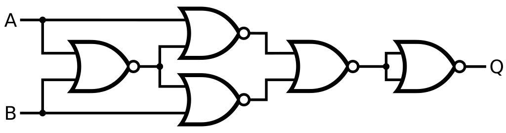 | Keywords: XOR from NOR 2.svg XOR gate from only NAND gates This method has a propagation delay 4 times that of a single gate - an alternative design has just 3 and uses the same number of gates own Inductiveload 2009-01-16 Alternative logic gates XOR gates NOR gate symbols |
