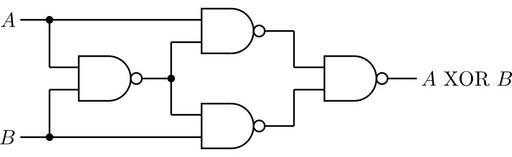 | Keywords: XOR using NAND.svg XOR implemented with NAND gates XOR_Using_NAND jpg 2009-10-27 08 44 UTC XOR_Using_NAND jpg KlaudiuMihaila derivative work Robert A Maxwell <span class signature-talk >talk</span> <br /> To reproduce this image with circuit-macros use the following code <pre> PS cct_init include HOMELIB_`liblog m4' scale 25 4 Use millimetres sec 5 Horizontal length of each section vgap 20 Vertical gap between A and B nawid 11 Need a value for width of NAND gate before use LA A rjust; line right_ nawid+4 sec NA1 NAND_gate with In1 at Here move to 0 -vgap LB B rjust; line right_ nawid+4 sec NA2 NAND_gate with In2 at Here move to 2 sec -vgap/2 NA3 NAND_gate; line right_ sec; dot move to NA3 Out+ sec 0 ; line to Here x NA1 In2 y ; line to NA1 In2 move to NA3 Out+ sec 0 ; line to Here x NA2 In1 y ; line to NA2 In1 dot at LA+ sec 0 ; line to Here x NA3 In1 y ; line to NA3 In1 dot at LB+ sec 0 ; line to Here x NA3 In2 y ; line to NA3 In2 move to 2 nawid+6 sec -vgap/2 NA4 NAND_gate; line right_ sec; A XOR B ljust line from NA1 Out right_ sec; line to Here x NA4 In1 y ; line to NA4 In1 line from NA2 Out right_ sec; line to Here x NA4 In2 y ; line to NA4 In2 PE </pre> Redrawn in circuit-macros and saved as SVG circuit-macros XOR_Using_NAND jpg Alternative logic gates NAND gate symbols XOR gates |