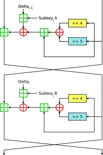 Keywords: XTEA InfoBox Diagram.svg Diagram showing two rounds one cycle of the XTEA block cipher XTEA_InfoBox_Diagram png 50 2012-04-10 05 30 UTC XTEA_InfoBox_Diagram png Matt Crypto derivative work Portablejim Original upload log This image is a derivative work of the following images File XTEA_InfoBox_Diagram png licensed with PD-user-w 2007-07-07T19 21 36Z Wdwd 250x372 27460 Bytes <nowiki> en english Wikipedia Matt Crypto Cryptography diagrams </nowiki> Uploaded with derivativeFX Symmetric cipher diagrams Ciphers