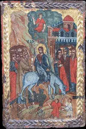 | Keywords: Влегување во Ерусалим, XVII век (Struga).jpg mk Влегување во Е усалим XVII век Ц ква Св Ѓо ѓија во Ст уга акедонија http //www org mk/struga-heritage/gallery asp-lang mac izdanie 01 avtor 1036 mediaID 1792 htm author century 17 PD-Macedonia Icons in St George's Church Struga Icons of the triumphal entry into Jerusalem |