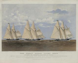 | Keywords: Yachts Henrietta, Fleetwing & Vesta.jpg The Great Ocean Yacht Race Between Henrietta Fleetwing Vesta by Charles Parsons; an 1867 Currier Ives lithograph LOC-image pga 00436 1867 Creator Charles Parsons artist Charles R Parsons artist Currier Ives publisher PD-old-100 unknown Currier and Ives marine lithographs Sailing yachts of the United States New York Yacht Club Charles Parsons artist Gaff rigged schooners Henrietta ship 1861 Fleetwing ship 1865 | ||||