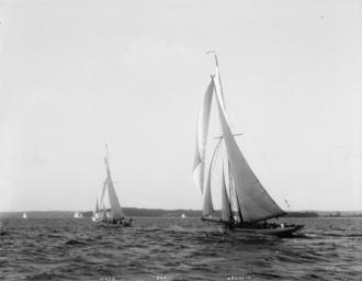 | Keywords: Yachts Wasp & Bedouin.jpg H F Lippitt's Wasp Herreshoff design 1892 and John M Mitchell's cutter Bedouin John Harvey design 1882 Pictured on June 26th 1987 in a Seawanhaka Yacht Club race http //query nytimes com/mem/archive-free/pdf res 990DE5D91630E132A25754C2A9609C94669ED7CF New York Times - Carmita Beats Wasp LOC-image det 4a21553 Creator John S Johnston 1897-06-26 PD-Detroit Gaff rigged cutters Wasp ship 1892 Photographs by John S Johnston Boats under sail Black and white photographs Bedouin ship 1882 |