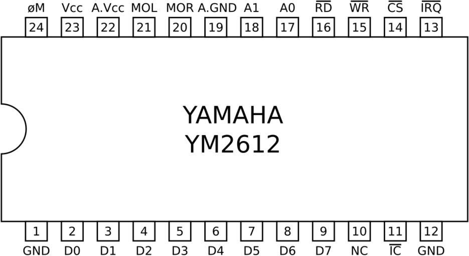 Keywords: Yamaha YM2612 pinout.svg Pinout of the Yamaha YM2612 IC chip Adobe Illustrator Valid SVG File Yamaha YM2612 pinout gif 2010-04-16 Original User Ben Boldt / Vector Fred the Oyster File Yamaha YM2612 pinout gif Electronic components Images created by Fred the Oyster |